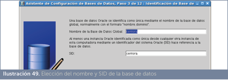 [11]Paso 3. Indicar el nombre de la base de datos (toda nuestra red usará ese nombre) y un identificador de la base de datos (SID). Normalmente se pone el mismo nombre en ambos apartados. Este nombre será por el que nos referiremos en todo momento a la instancia de base de datos, es uno de los pasos fundamentales por lo tanto.