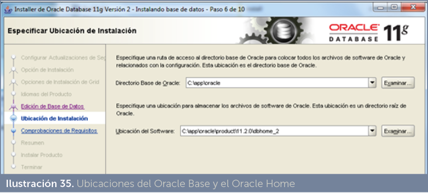 [9]Si el usuario de instalación se llama oracle, el directorio Oracle Base será C:\app\oracle, el Oracle Home será algo del tipo: