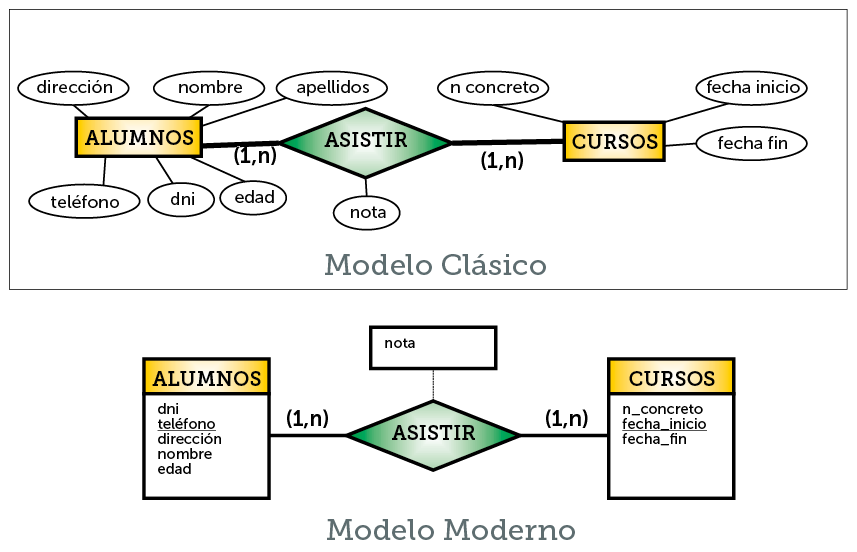 Ilustración 35. Representación clásica y más moderna del mismo diagrama Entidad/Relación