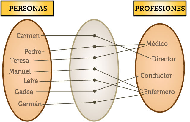 En el dibujo anterior, trabajar podría ser el nombre del conjunto de relaciones entre las entidades personas y trabajos.