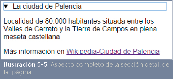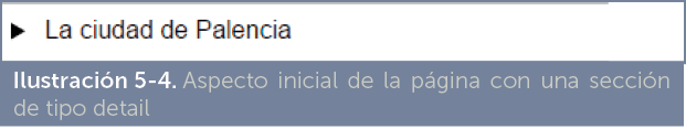 Como se observa, solo se muestra el contenido del apartado summary. Tras hacer clic en el triángulo o en el texto, se mostraría el contenido del elemento details.