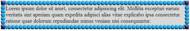 Para la zona que no es la esquina, indicaremos como haremos para rellenar completamente el elemento. Es decir, en la imagen anterior, los círculos azules no valen para rellenar el elemento completo al que estemos dando borde con la imagen. Por ello indicaremos al navegador que repita cada círculo (round), o bien que le estire (stretch).