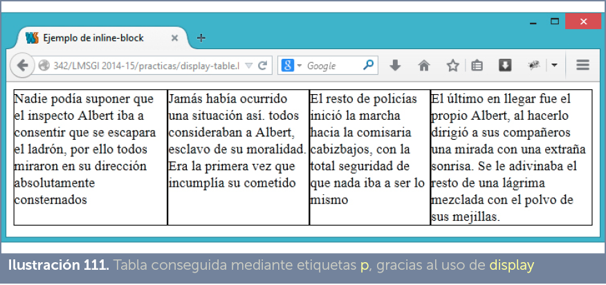 } </style> </head> <body> <div id=”contenedor”> <div id=”fila”> <p> Nadie podía suponer que el inspecto Albert iba a consentir que se escapara el ladrón, por ello todos miraron en su dirección |